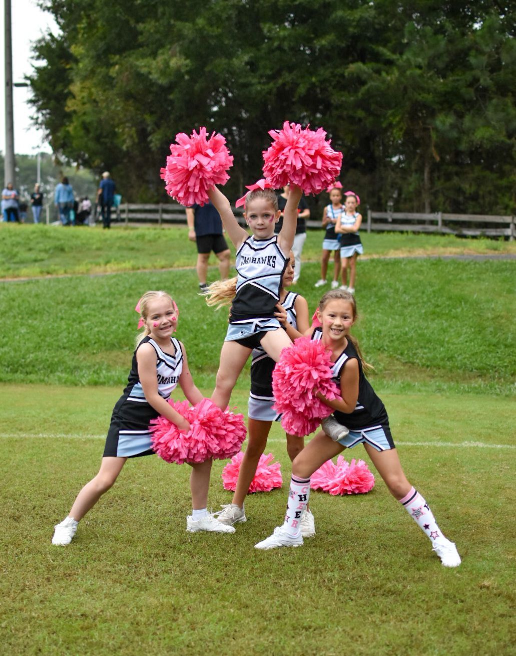 Our Cheer program exposes athletes to cheers, stunts and tumbling in a safe and structured environment.